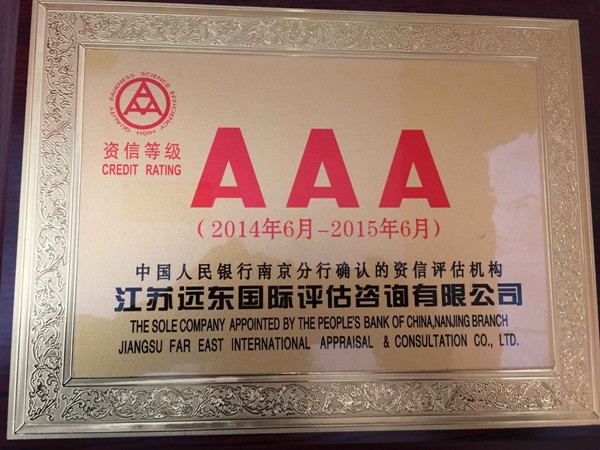 熱烈慶祝泰興市美潤嘉材料科技有限公司榮獲資信3A等級,由江蘇省遠東國際評估咨詢有限公司評估頒發(fā),遠東國際評估咨詢公司是中國人民銀行南京分行確認的資信評估機構(gòu),3A等級是評級公司給出的最高信用評級。